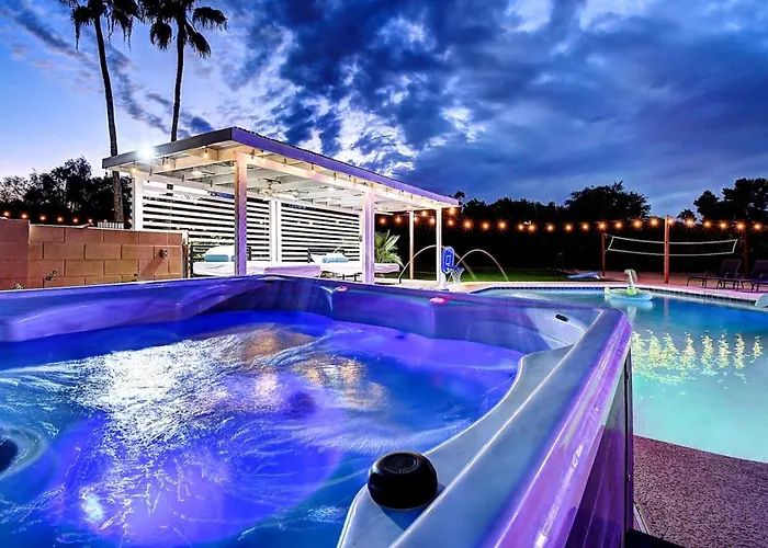 La Villa Sweetwater Estate Scottsdale cuenta con un jacuzzi y una bañera de hidromasaje y está a 3 km de lugares de ocio como el recinto WestWorld of Scottsdale. La villa ofrece la posibilidad de practicar ping-pong y billar en la zona, a unos 10 minutos en coche del Museo de Carreras Penske.